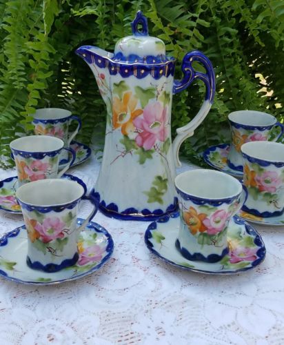 Flow Blue handpainted Chocolate pot set
