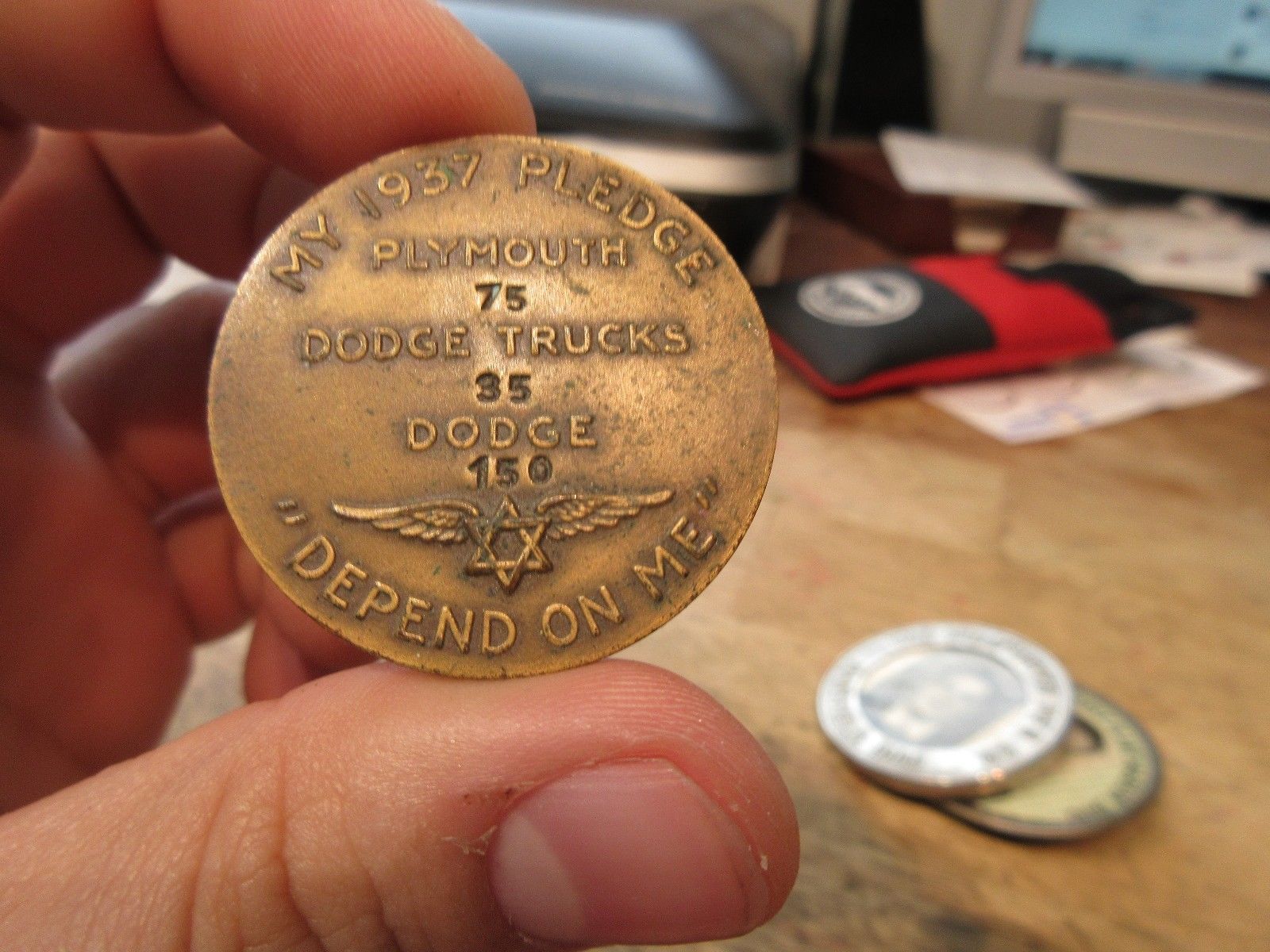 Title (ebay affiliate link): 1937 Plymouth Dodge Trucks Depend on Me Coin Token Jewish Star of David Wings DB