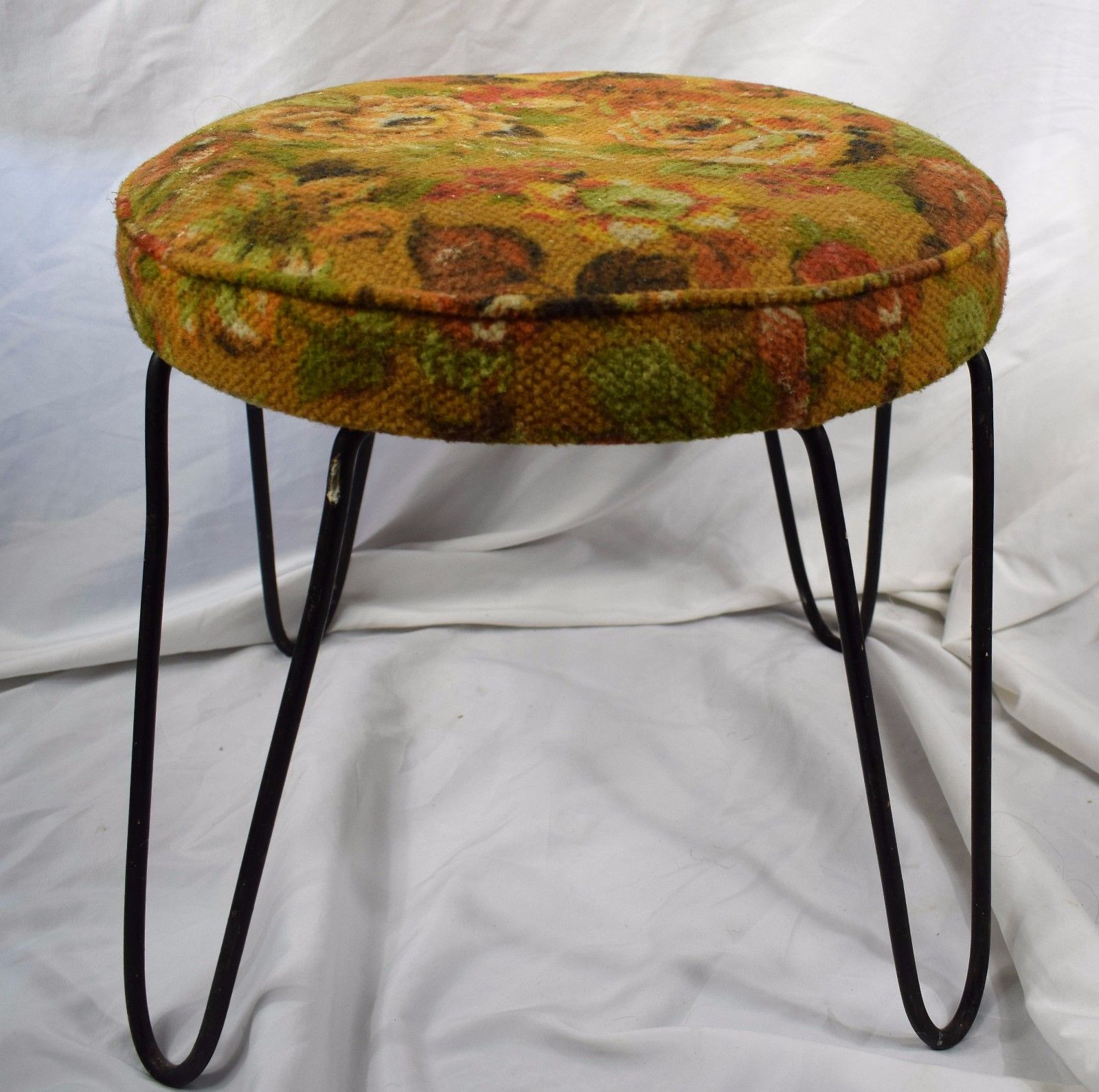 Title (ebay affiliate link): Vintage Mid Century Hairpin Leg Round Foot Stool Ottoman Seat - Upholstered