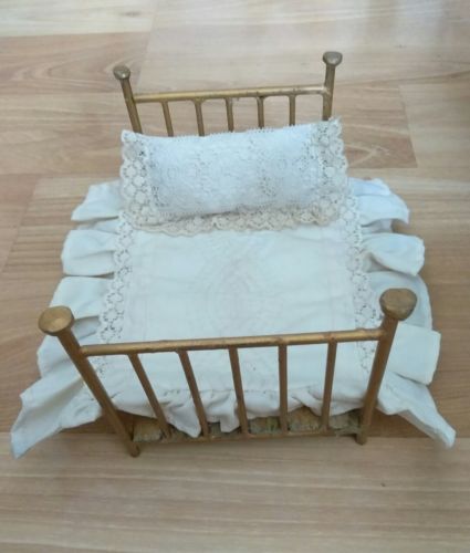 Title (ebay affiliate link): Antique Vintage Metal & Wood Dollhouse Furniture Bed Crochet Bedding