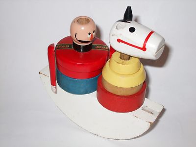 VINTAGE BRIO WOODEN STACKING PIECES PART HORSE SOLDIER