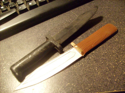 2 Two 'rubber' plastic knifes, Parris TraineRifle USA +