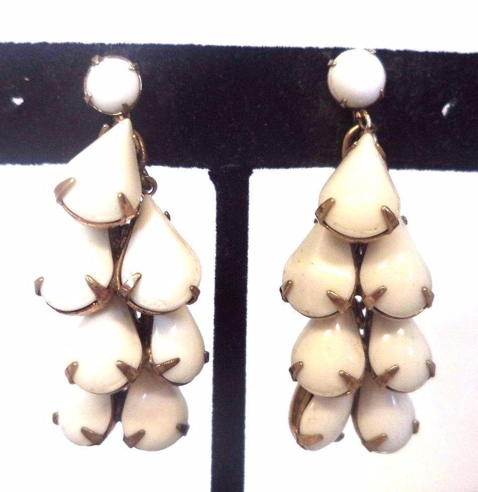Title (ebay affiliate link): VINTAGE ESTATE HIGH END MILK GLASS DANGLE 1 5/8" SCREW BACK EARRINGS!!! G6487D