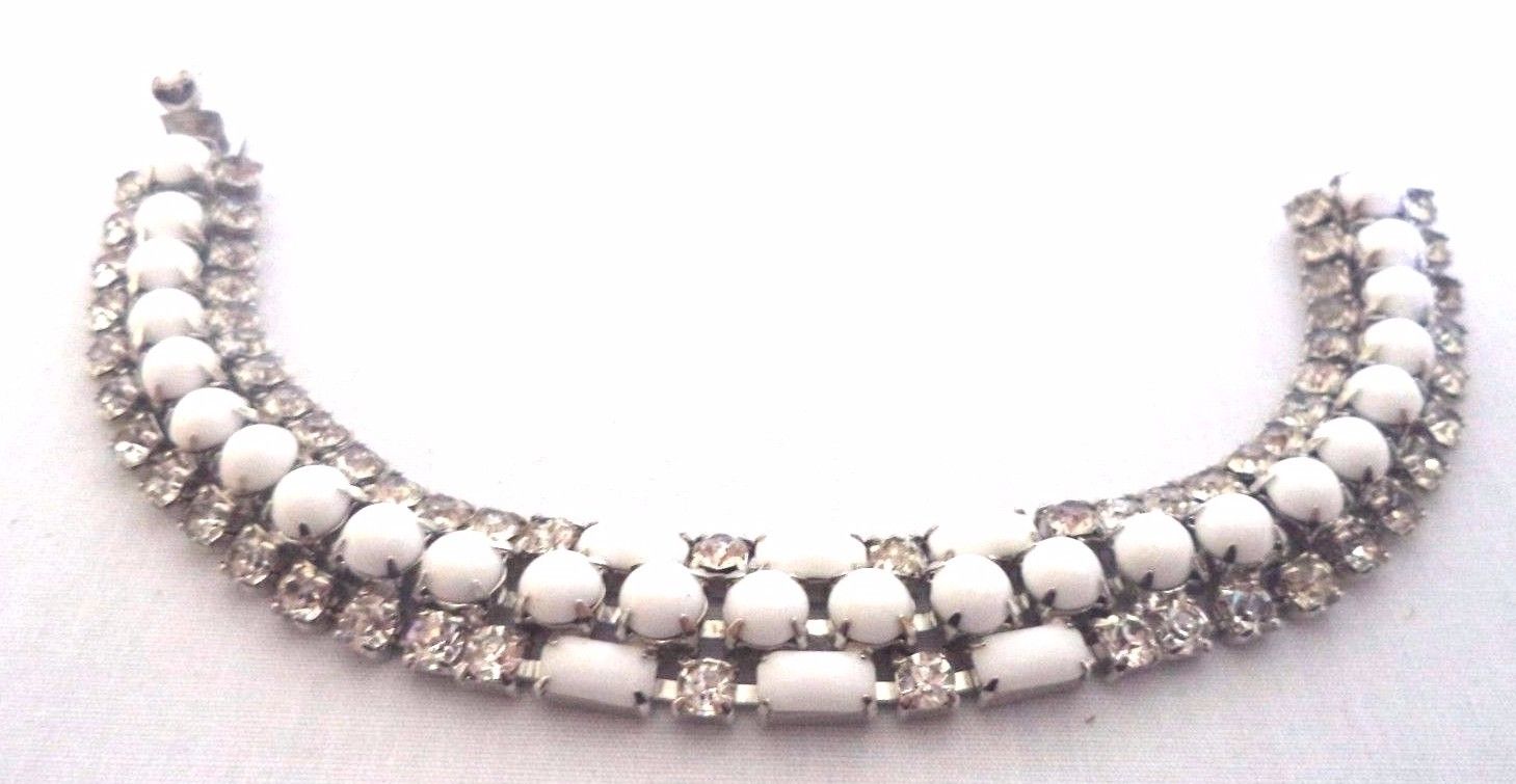 Title (ebay affiliate link): STUNNING VINTAGE ESTATE HIGH END RHINESTONE MILK GLASS 7 7/8" BRACELET!!! G6490O