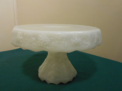 Vintage White Milk Glass 10" Cake Stand/ Grape & Leaf Detail /Weddings & Showers