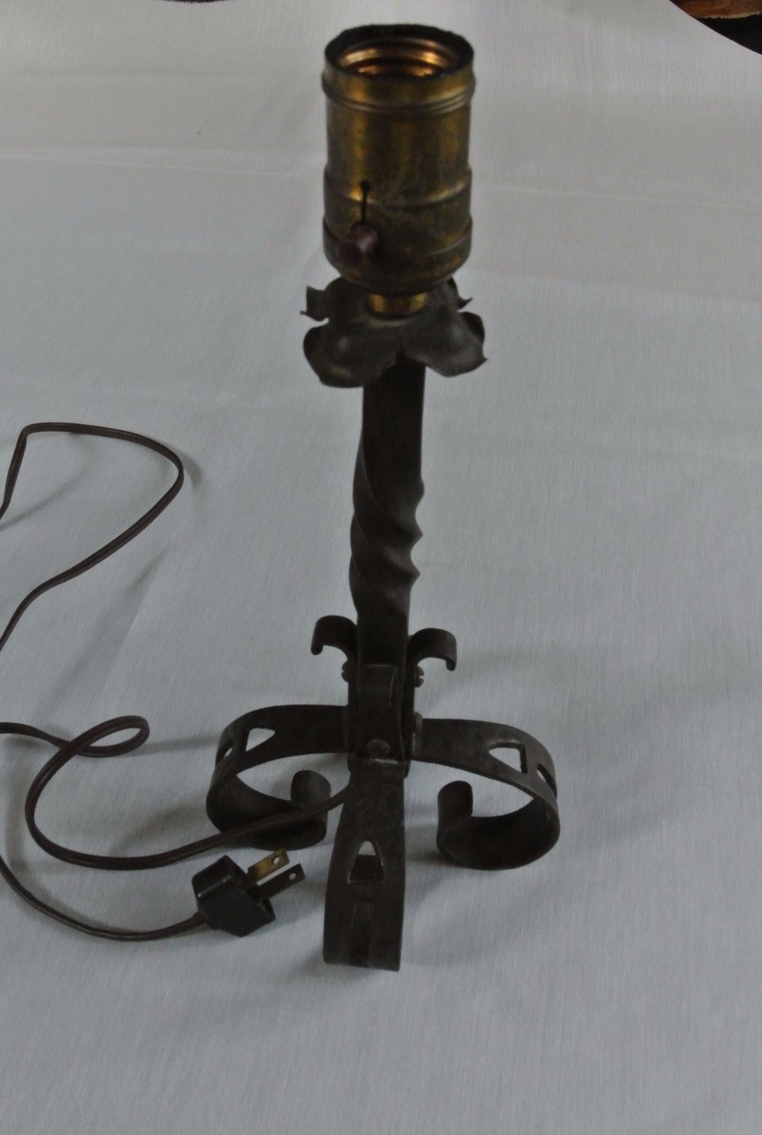 Antique Arts & Craft small Gothic Wrought Iron table lamp 12"