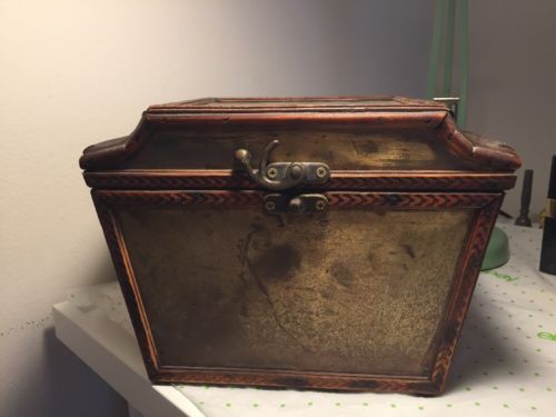 Title (ebay affiliate link): Vintage Antique Carved Wooden Storage Chest Box Metal Hinged Accents NR
