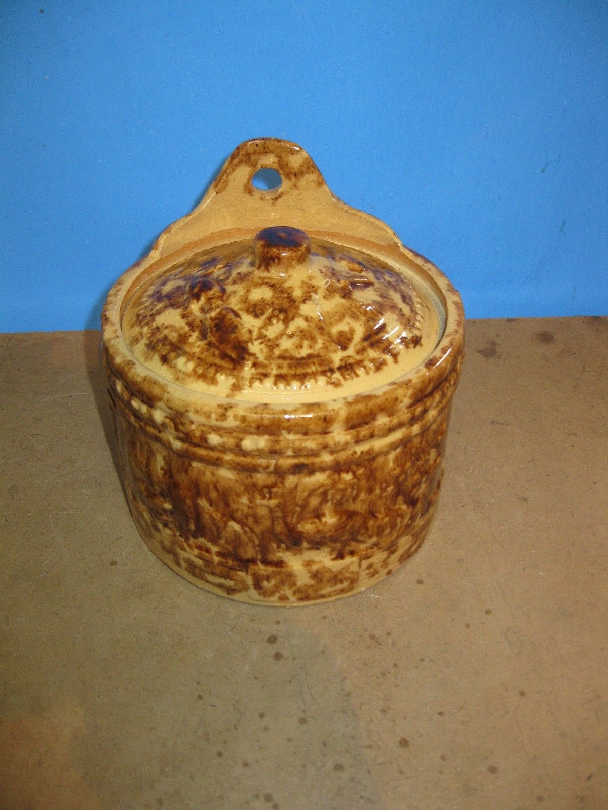 antique bennington style yellow ware peacock pattern salt crock box kitchen