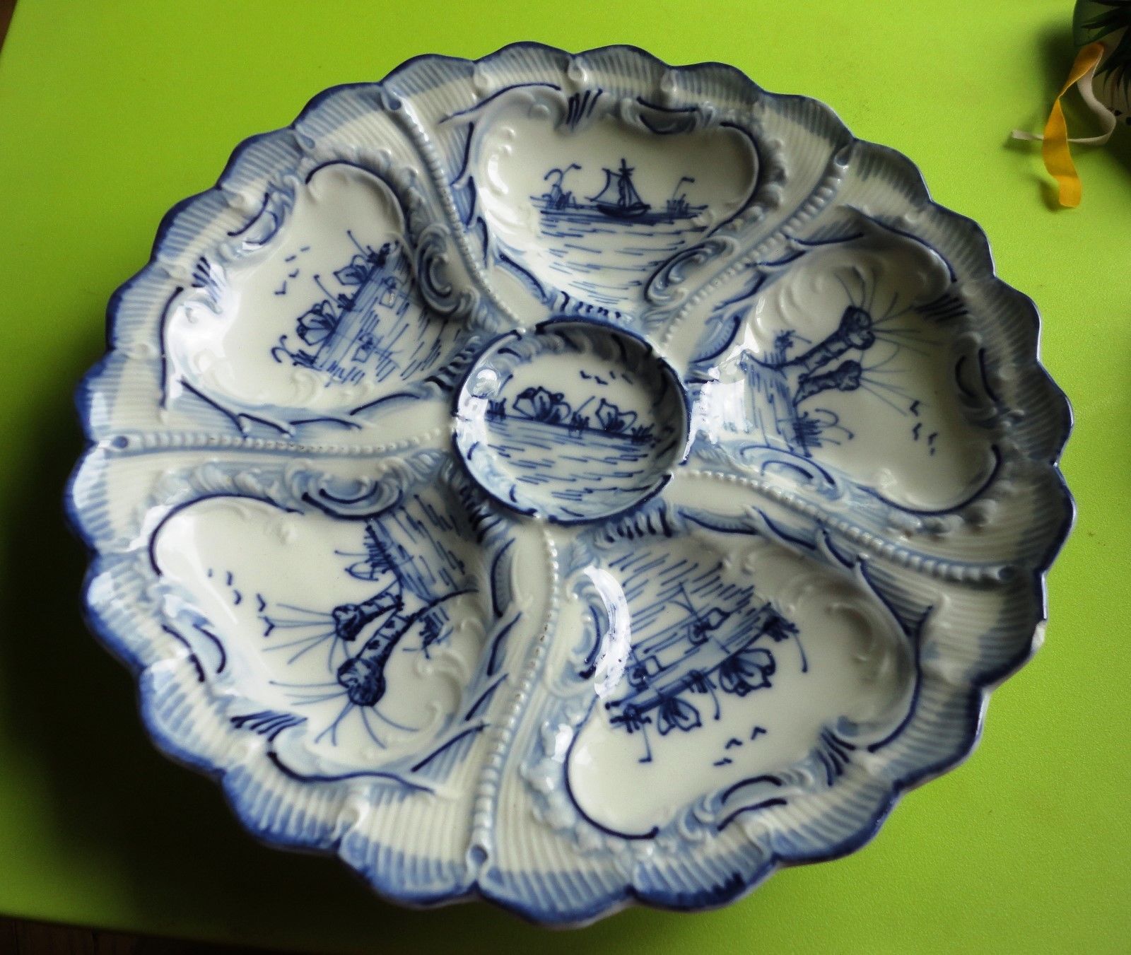 Antique Blue and White German Oyster Plate - Weimar