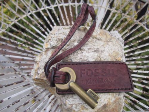 Title (ebay affiliate link): FOSSIL VINTAGE LEATHER GOLD KEY FOB KEYCHAIN CHARM BAG TAG HANG PURSE