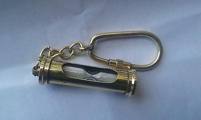 VINTAGE NAUTICAL SOLID BRASS & HOUR GLASS ANTIQUE SAND TIMER KEY CHAIN