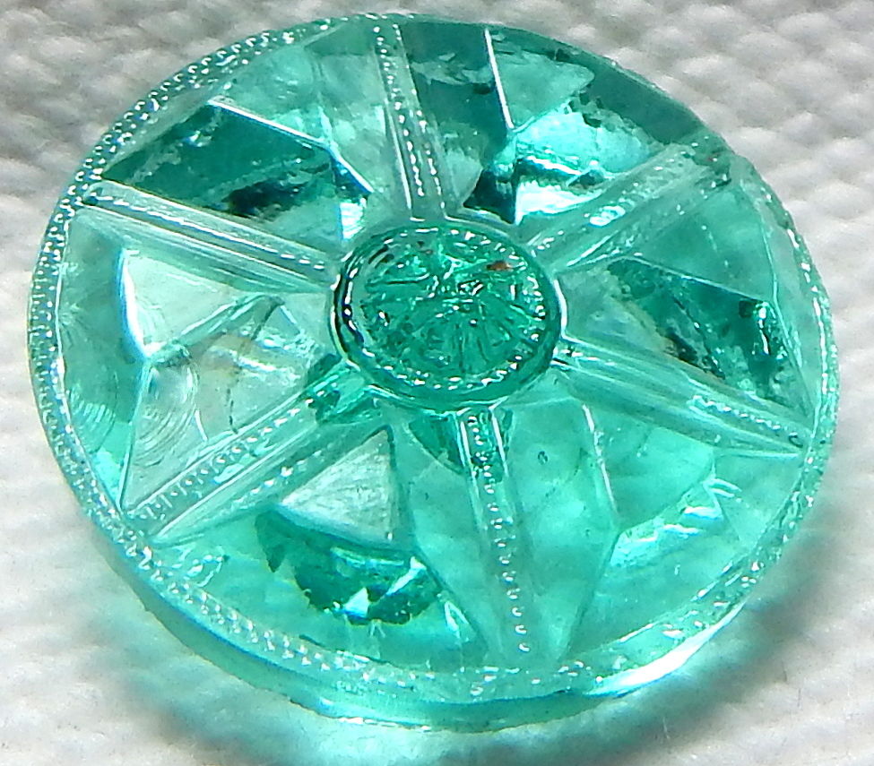 Title (ebay affiliate link): PRETTY 1930''S TRANSPARENT SEA FOAM GREEN DEPRESSION GLASS BUTTON