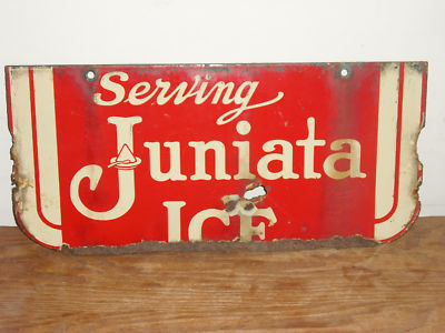 RARE VINTAGE DOUBLESIDED PORCELAIN SIGN JUNIATA ICE PA