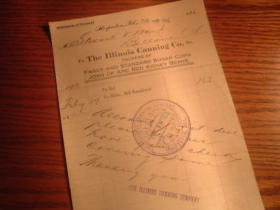 1916 "Illinois Canning Co/Joan of Arc Beans"letterhead!