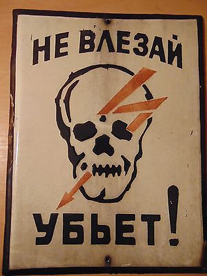 VINTAGE RUSSIA DANGER SIGN ENAMEL PORCELAIN INDUSTRIAL Electric DEATH metal skul