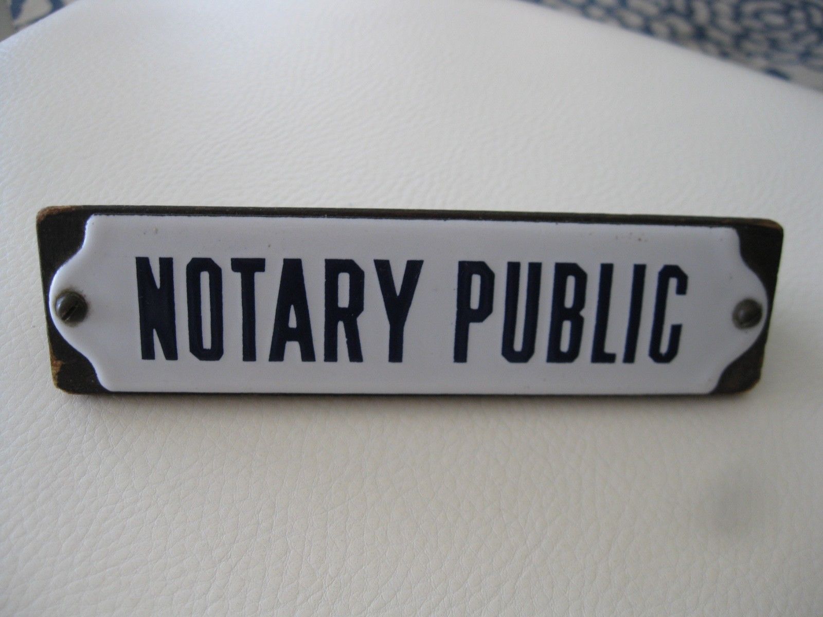 VINTAGE PORCELAIN NOTARY PUBLIC SIGN DESK TOP