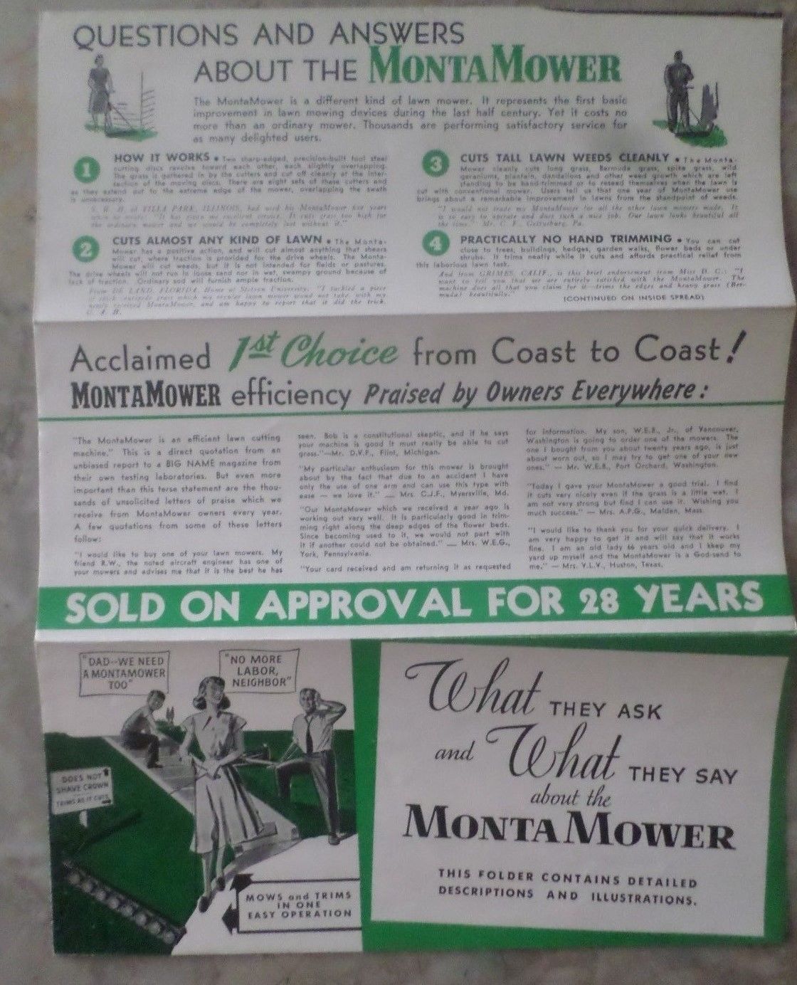 Title (ebay affiliate link): Monta Mower Pamphlet - woman in dress mowing - order form and more 1952
