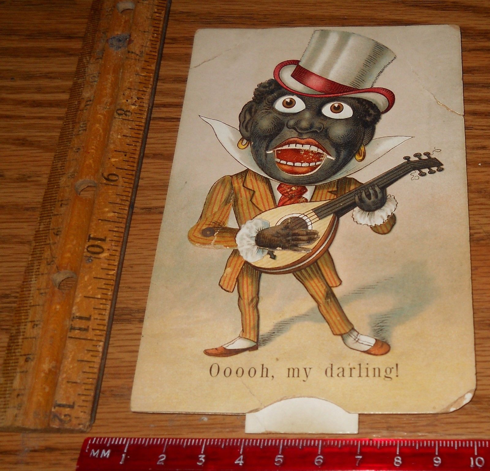 Title (ebay affiliate link): Victorian Trade Card~Mechanical Black Americana Man Playing Ukulele~Eyes Open