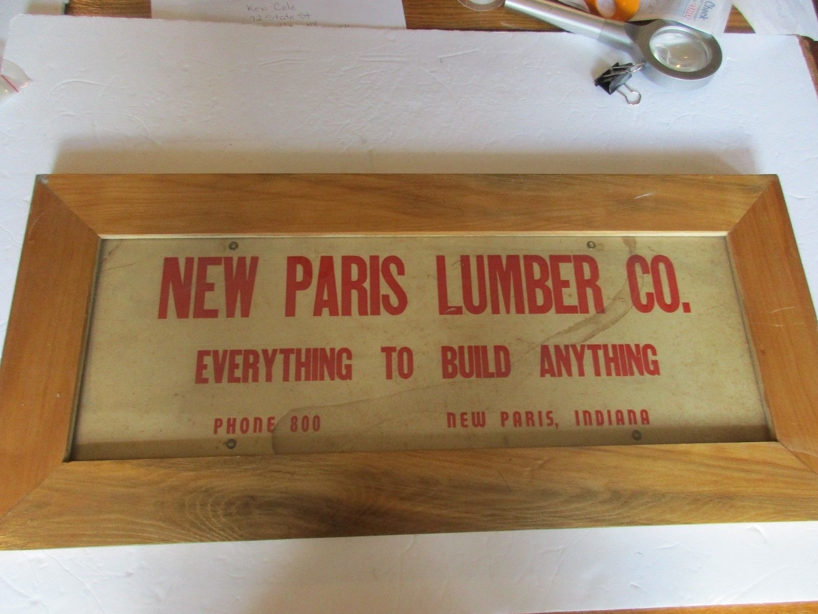 Title (ebay affiliate link): Vintage New Paris Lumber Co., New Paris Indiana Advertising Sign