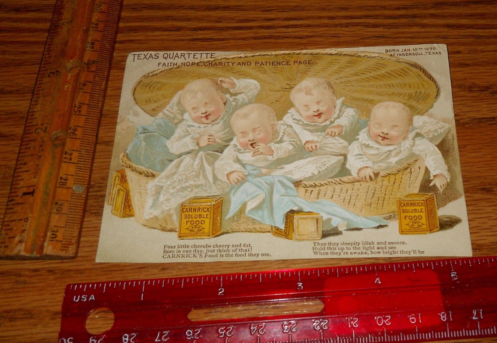 Title (ebay affiliate link): Hold to Light Victorian Trade Card~Texas Quadruplets~Ingersoll~Carnrick''s Food
