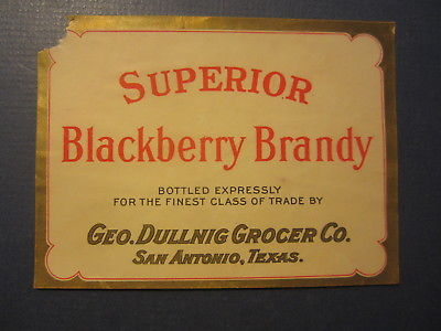 Old Antique c.1910 Blackberry BRANDY LABEL San Antonio TX. - Geo Dullnig GROCER