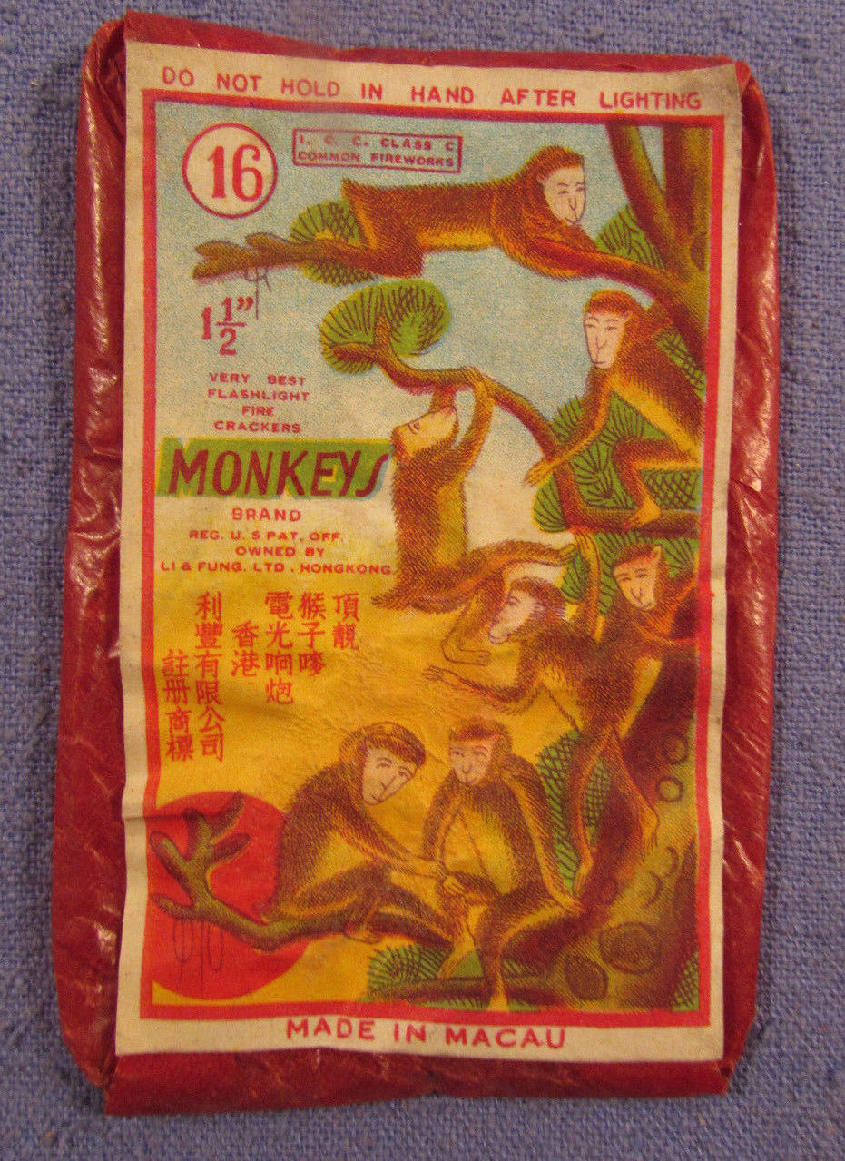 VINTAGE MONKEYS FIRECRACKER LABEL MADE IN MACAU