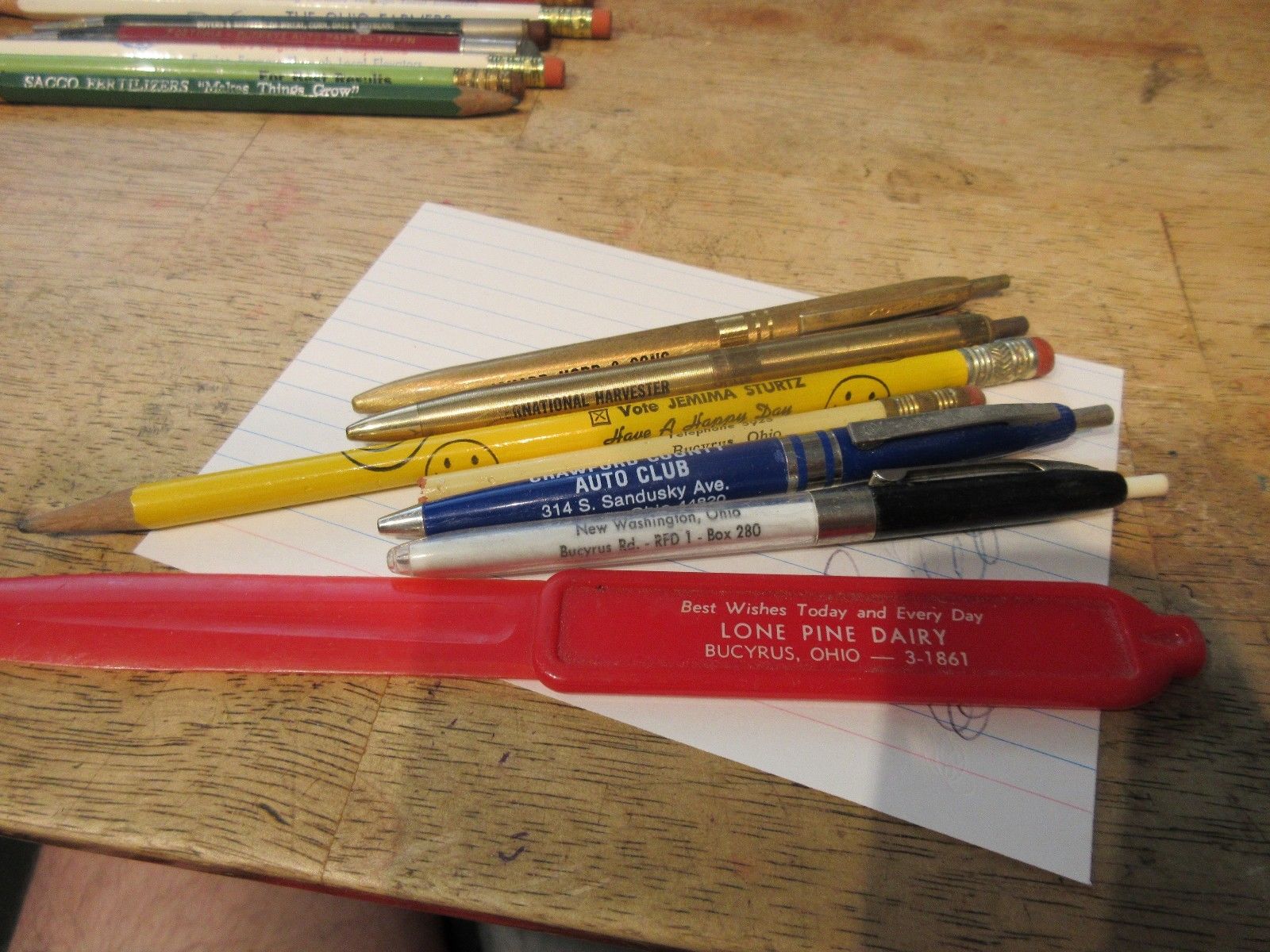 8 Old Advertising Pencils Pens Letter Opener Bucyrus Ohio Dairy Funeral Home Set