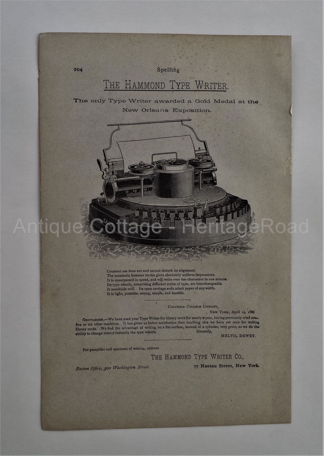 Title (ebay affiliate link): 1887 antique AD HAMMOND TYPEWRITER orig 6x9.5" type writer