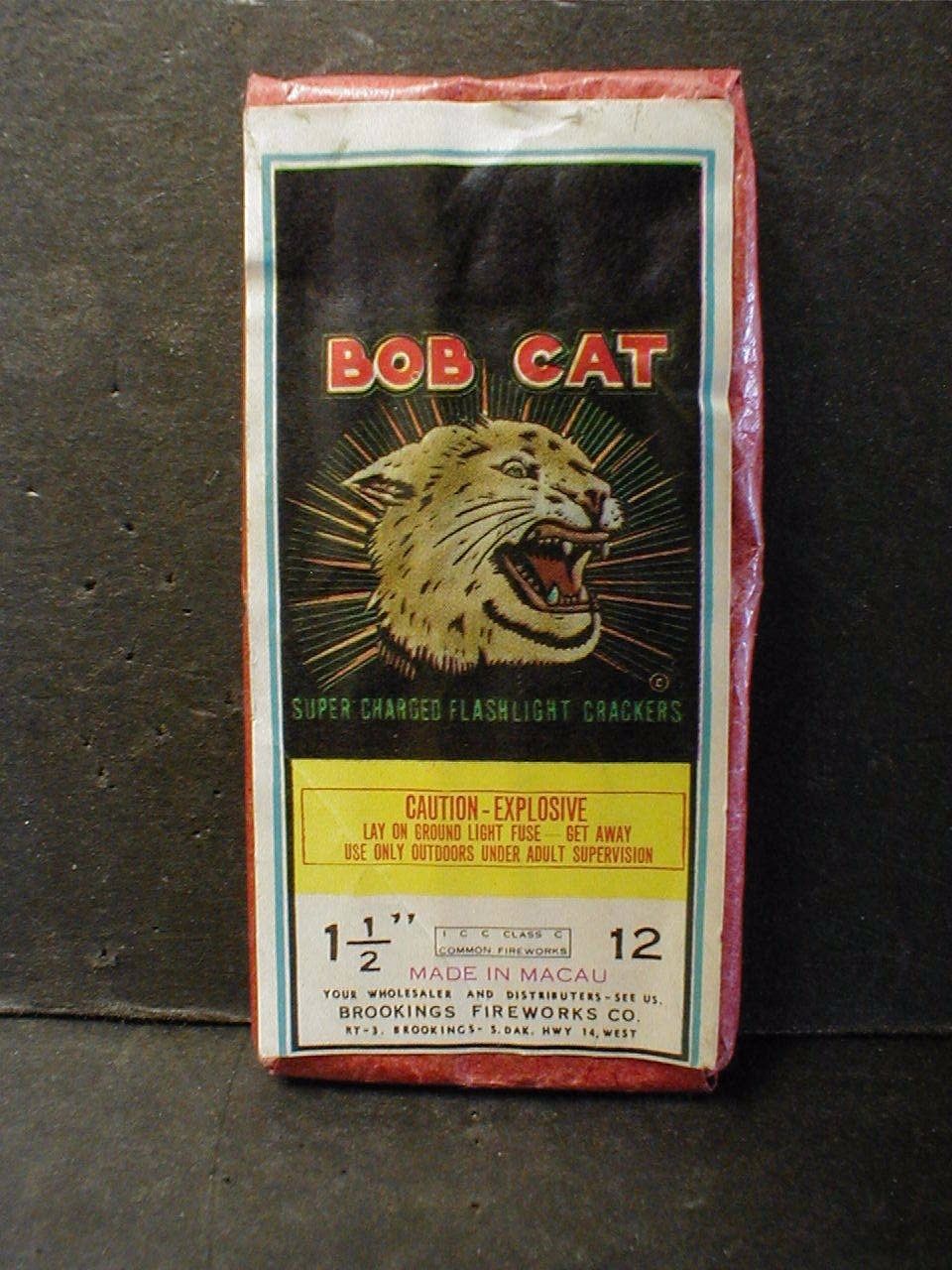 VINTAGE BOB CAT FIRECRACKER LABEL - BROOKINGS FIREWORKS Co. SOUTH DAKOTA