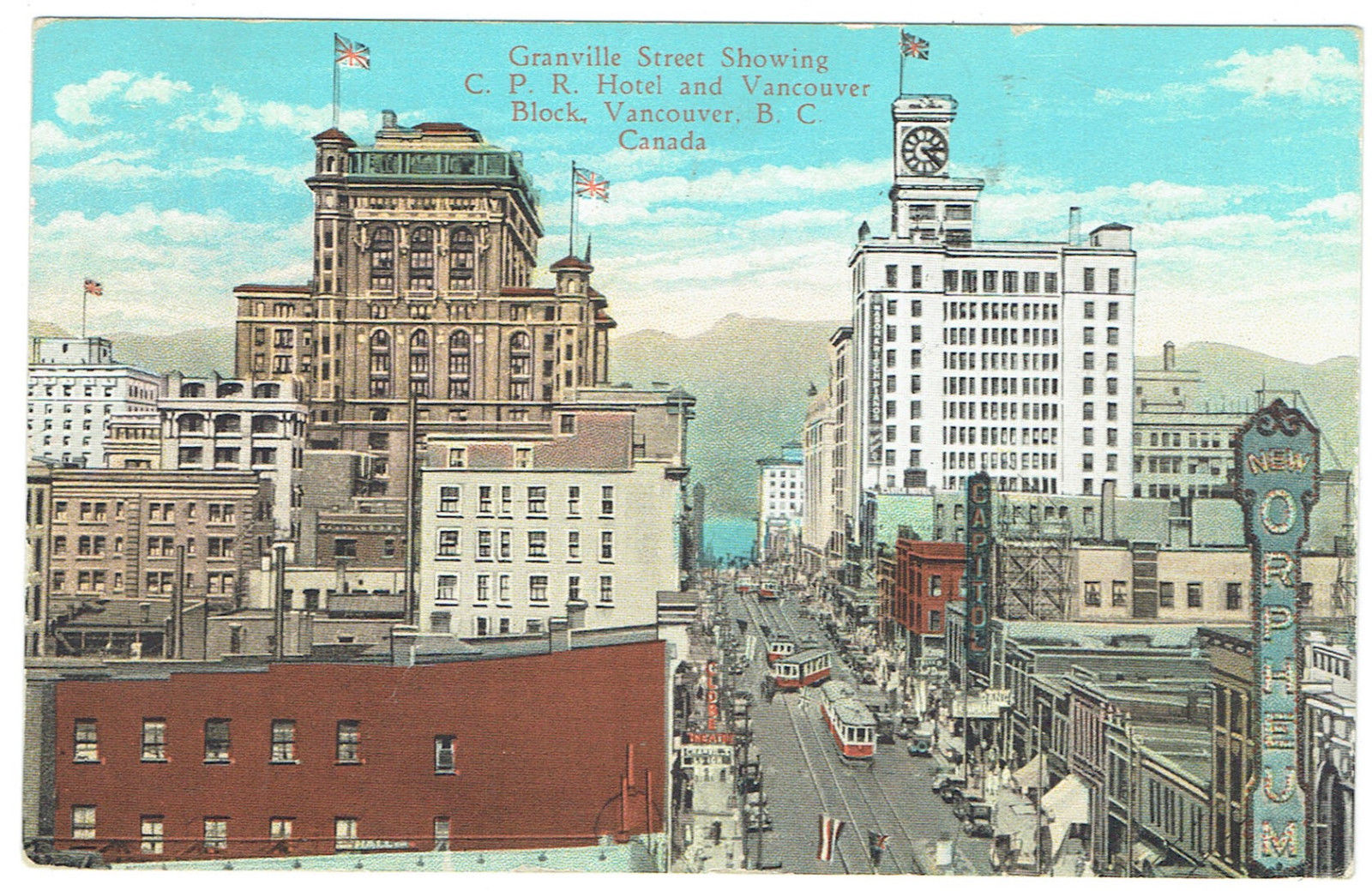 Vancouver British Columbia Canada Granville Street w/ C.P.R. Hotel posted 1929