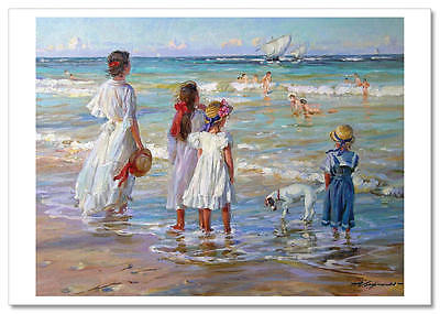 Title (ebay affiliate link): "sailboats" Children with a dog on the seashore, a modern postcard