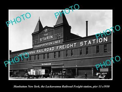 OLD LARGE HISTORIC PHOTO OF MANHATTAN NEW YORK, LACKAWANNA RAILROAD STATION 1930
