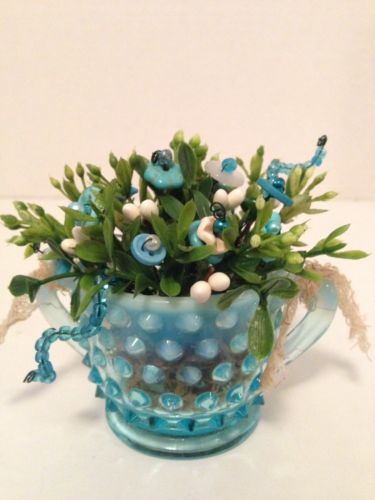 Title (ebay affiliate link): VTG Button Bouquet/Fenton Hobnail Sugar-Rustic Country Farmhouse Shabby Cottage