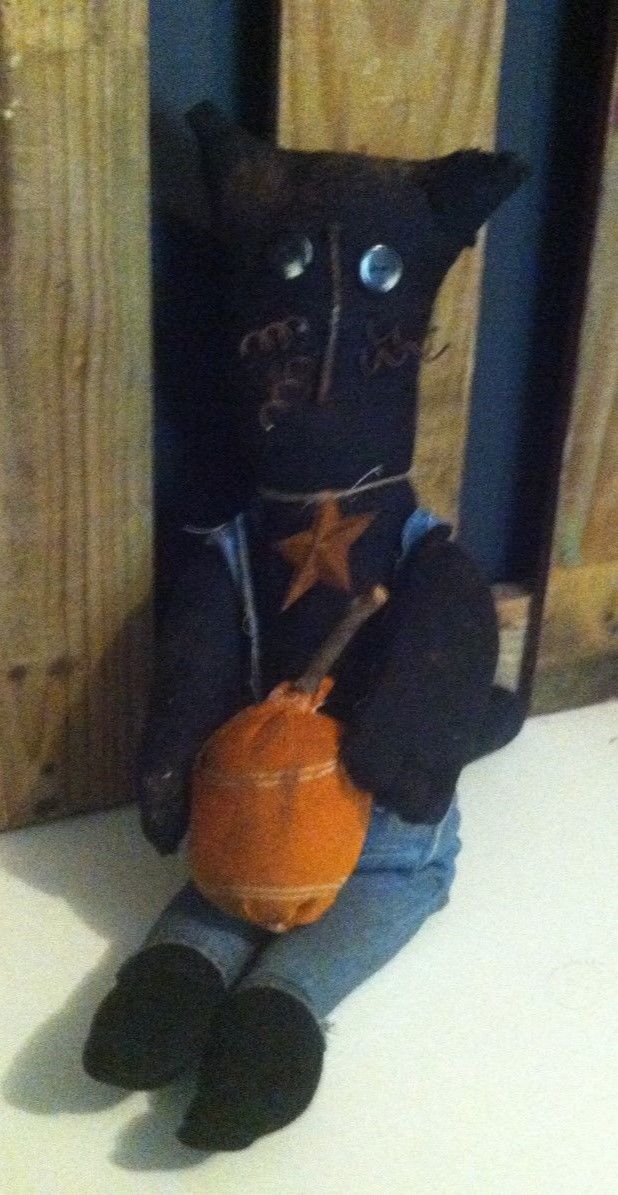 Title (ebay affiliate link): PRIMITIVE HALLOWEEN FALL BLACK CAT DOLL WITH HIS PUMPKIN DECOR