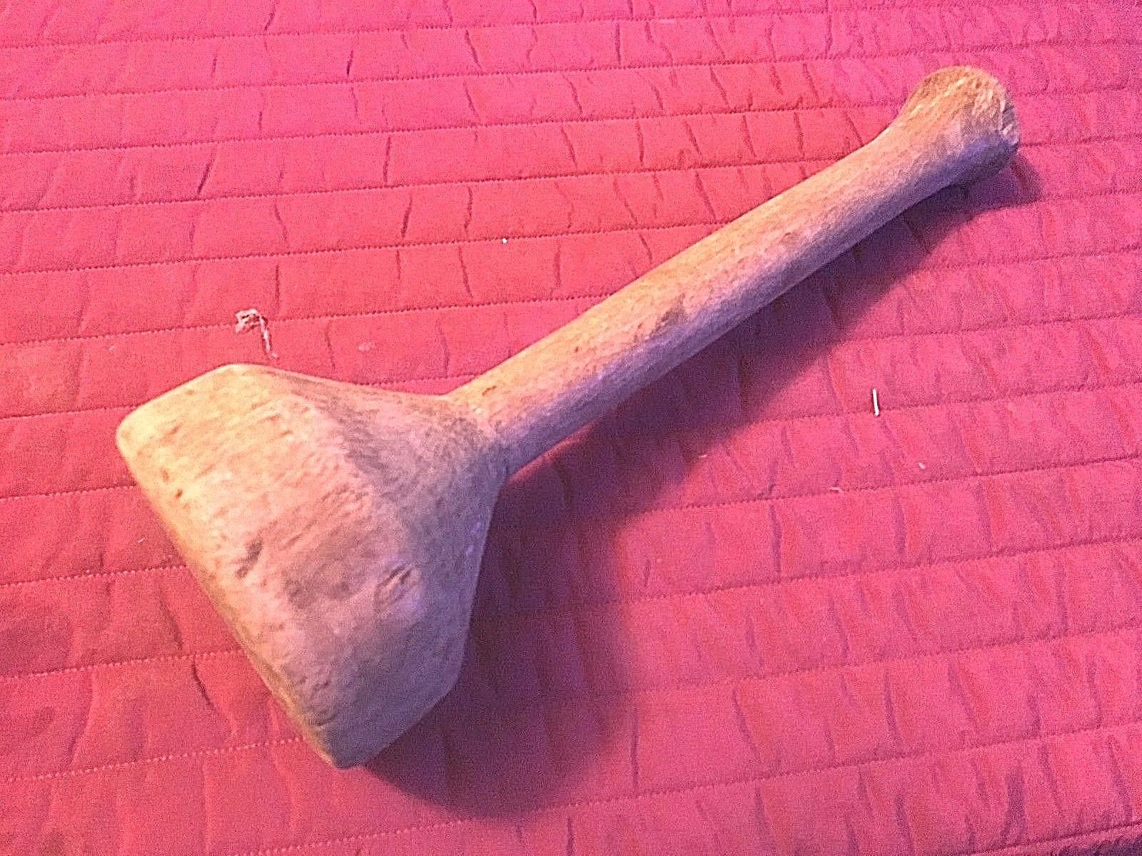 VINTAGE ANTIQUE WOOD MORTAR UTENSIL KITCHENWARE - 11 1/4"