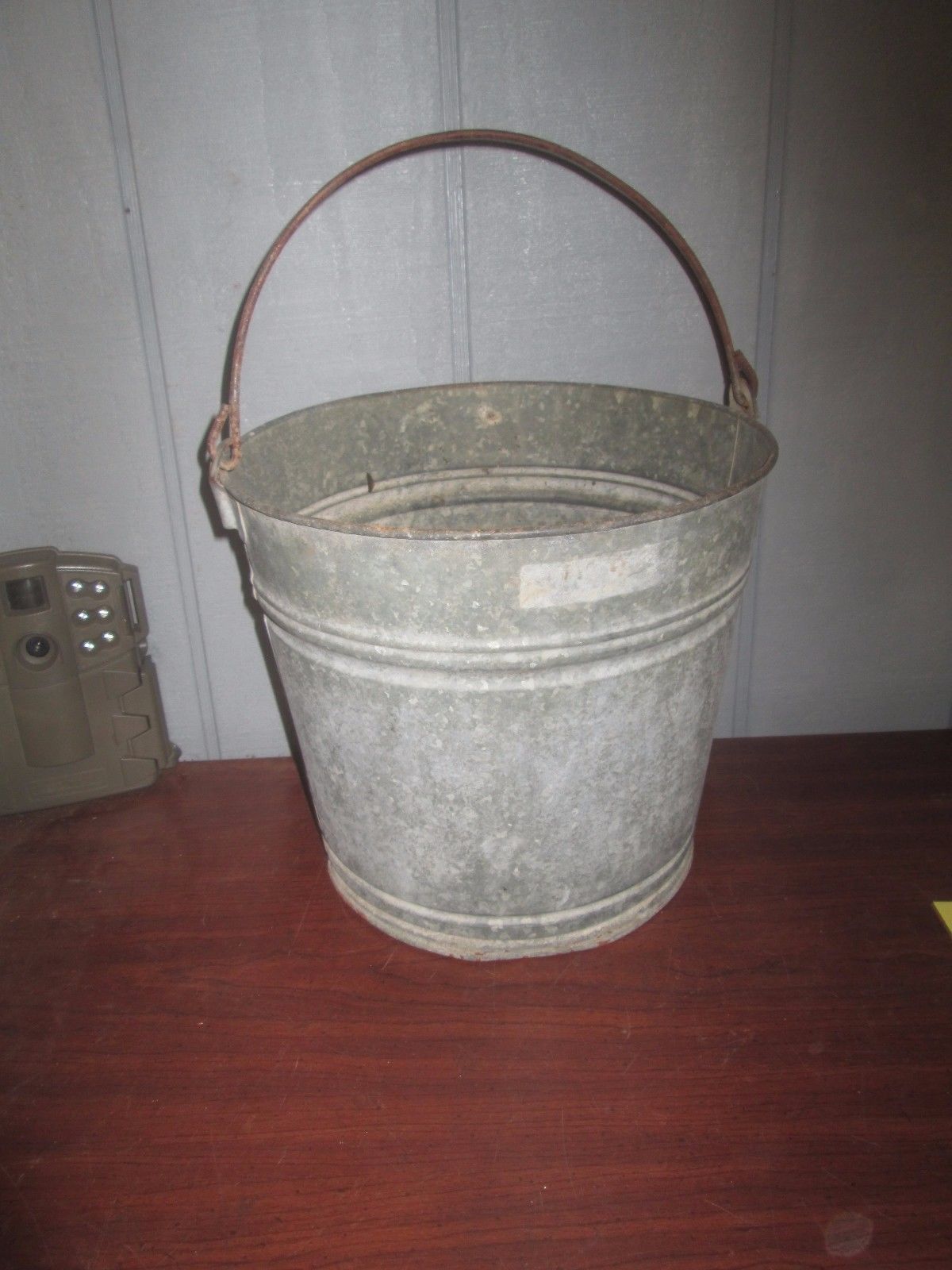 Vtg INDUSTRIAL WASH PAIL metal galvanized bucket w/ handle PRIMITIVE