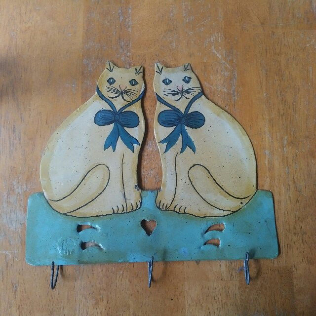 Title (ebay affiliate link): 1980''s Vintage Folk Art Primitive Painted Metal Cats Wall Hook EUC