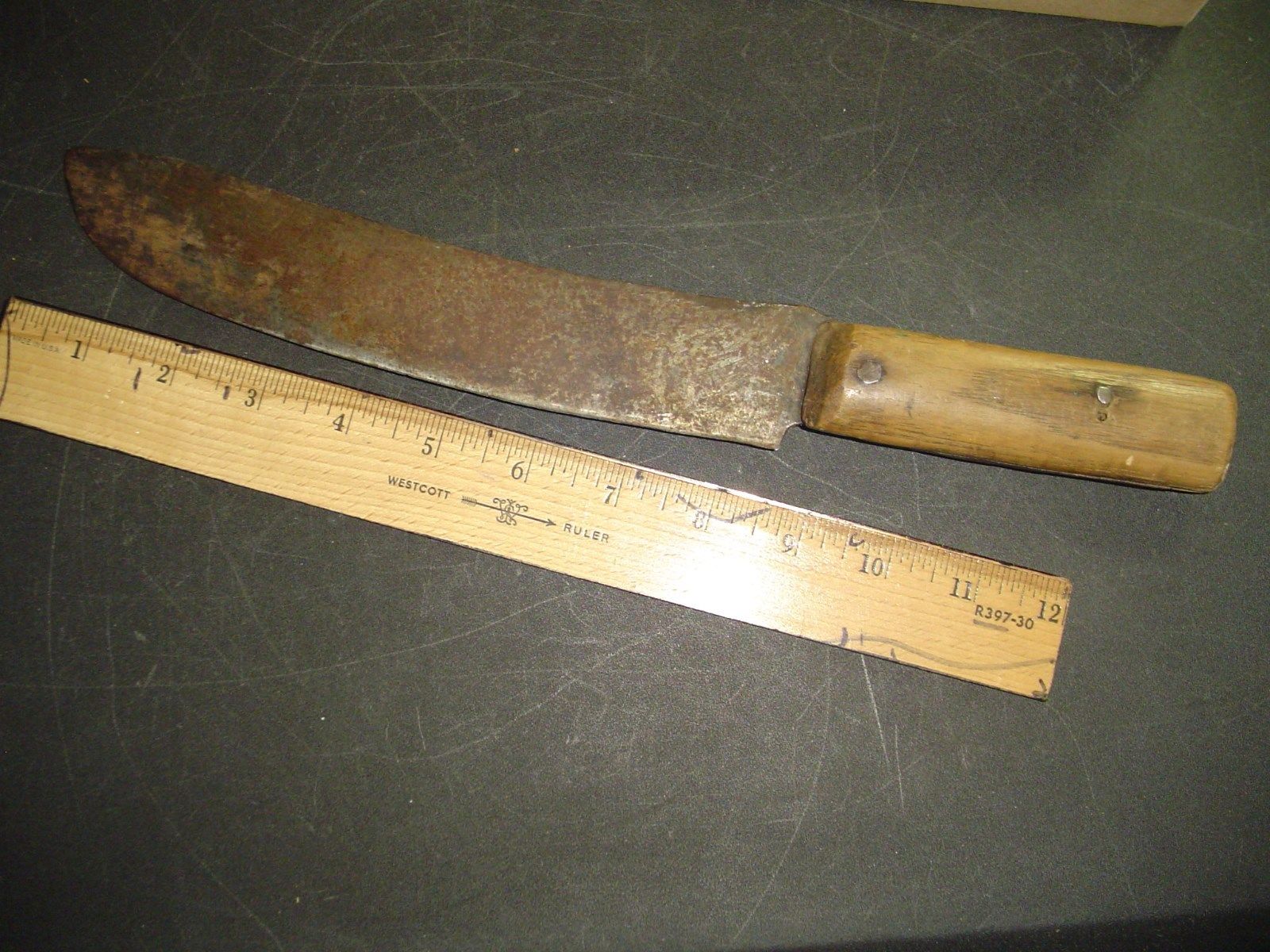 Title (ebay affiliate link): 13" HAND FORGED PRIMITIVE BUTCHER KNIFE, FOUND ON THE KANSAS PRAIRIE, 9" BLADE
