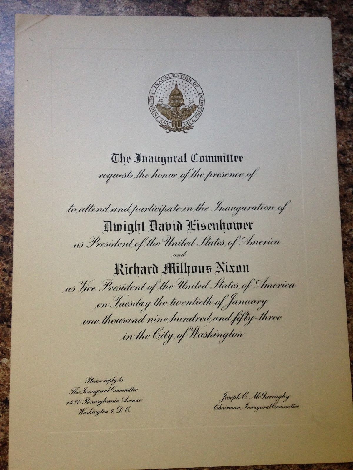 Invitation to 1953 Eisenhower Nixon Inauguration
