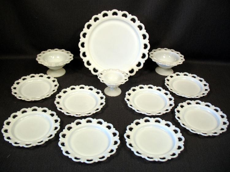 12pc ANCHOR HOCKING OLD COLONY LACE EDGE MILK GLASS LOT