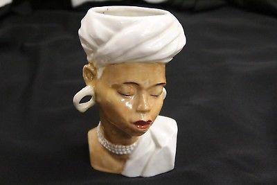 Title (ebay affiliate link): Art Deco Black Americana Occupied Japan Looped Earring Necklace Lady Head Vase