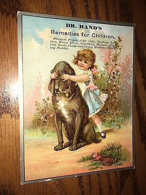 Victorian Trade Card Dr.Hand''s Remedies for Children Girl Plays Guess Who w/Dog