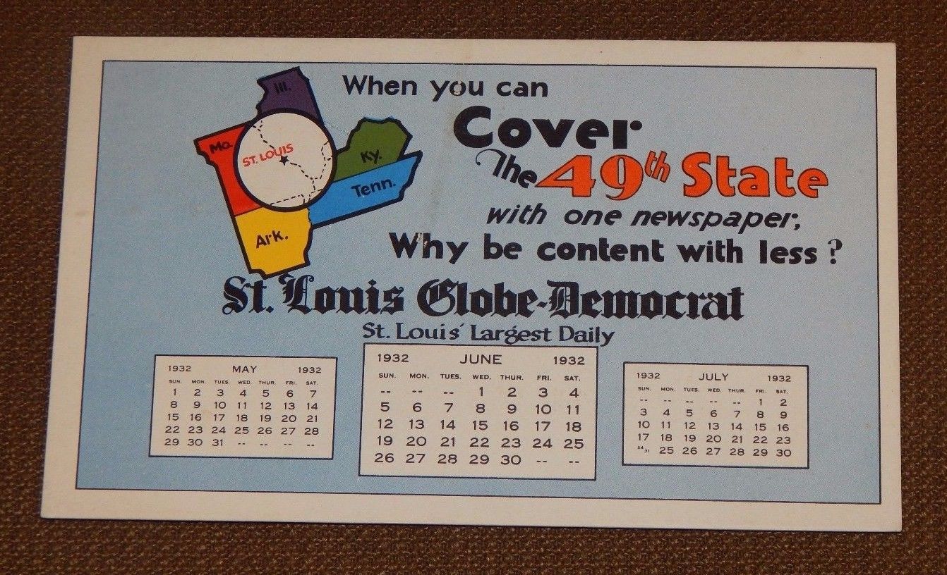 RARE 1932 St Louis Globe Democrat Newspaper advertising fountain pen ink blotter