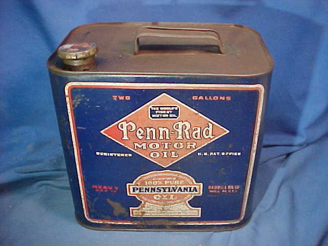 Title (ebay affiliate link): 1930s PENN-RAD Gas Station MOTOR OIL 2 Gallon ADVERTISING TIN