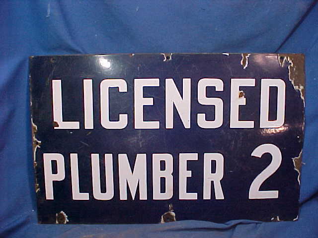 1930s LICENSED PLUMBER No 2 Blue + White PORCELAIN ENAMEL SIGN