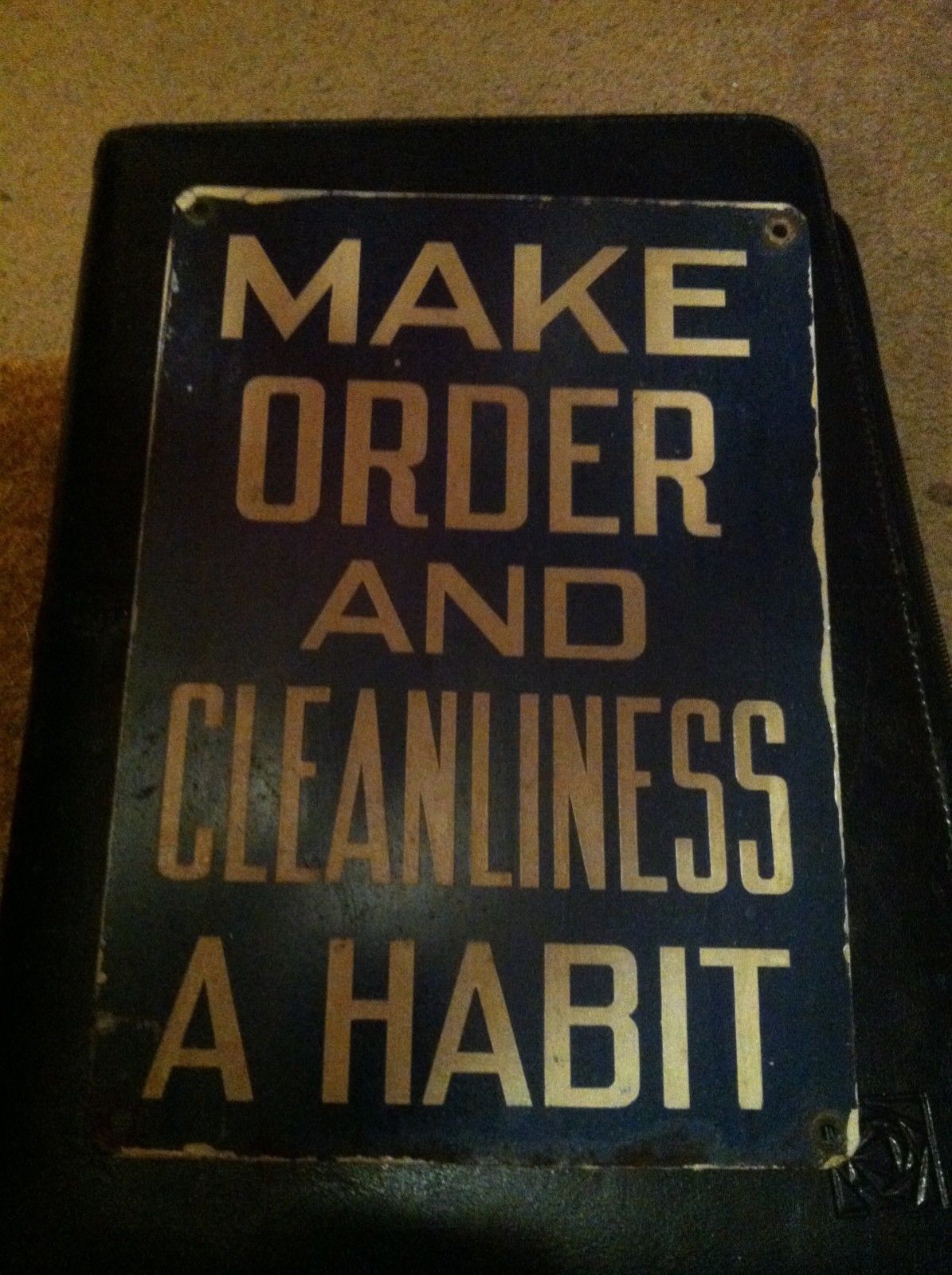 Title (ebay affiliate link): Antique Metal sign "Make order and cleanliness a habit" 1960''s 10" X 7"