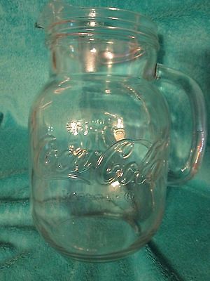 Title (ebay affiliate link): Very Rare Mason Jar Screw on Lid Look Top Coca Cola Clear Glass Pitcher Coke