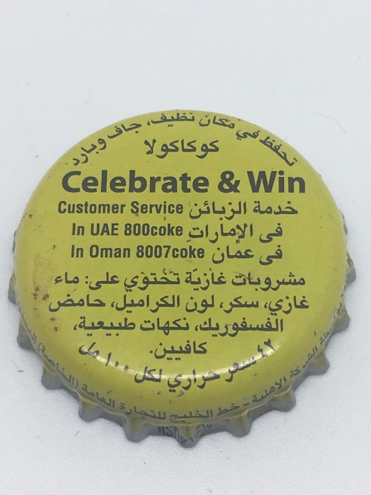 Title (ebay affiliate link): United Arab Emirates Oman Coca Cola Bottle Cap Celebrate & Win Limited Edition