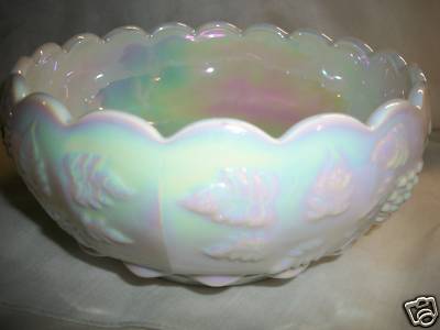 LG WESTMORELAND Paneled Grape CARNIVAL MILK GLASS Bowl