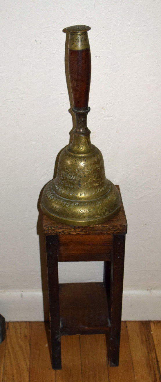 Large Antique Etched Brass Bell School Church Farm Ship Cast 13"